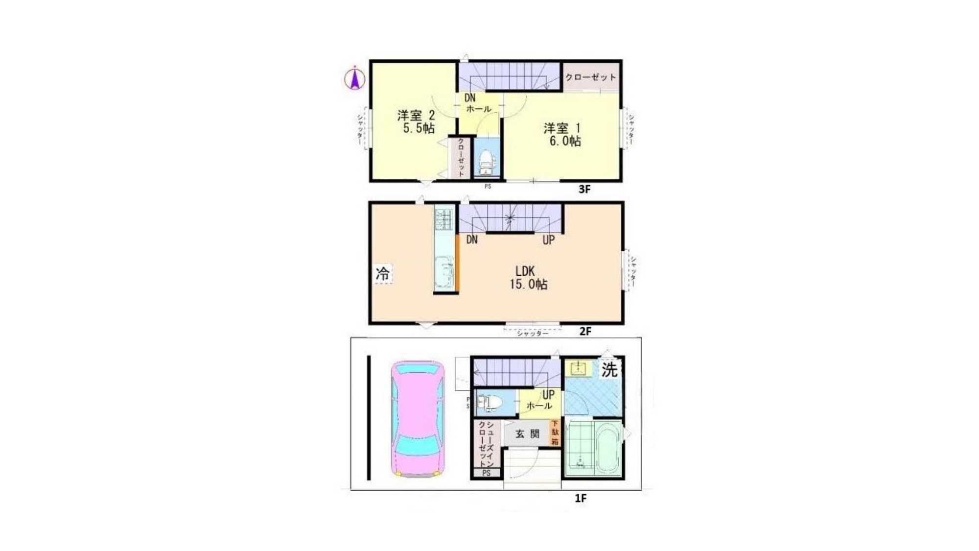 延床面積:81.48㎡(うち車庫部11.15㎡)/土地面積:39.66㎡