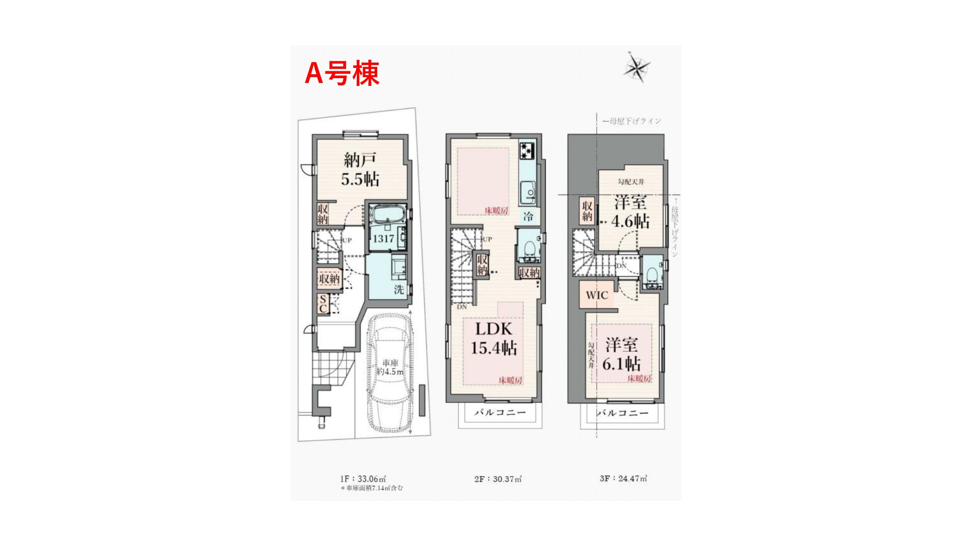 A号棟:5,180万円 / 2LDK+S+駐車場