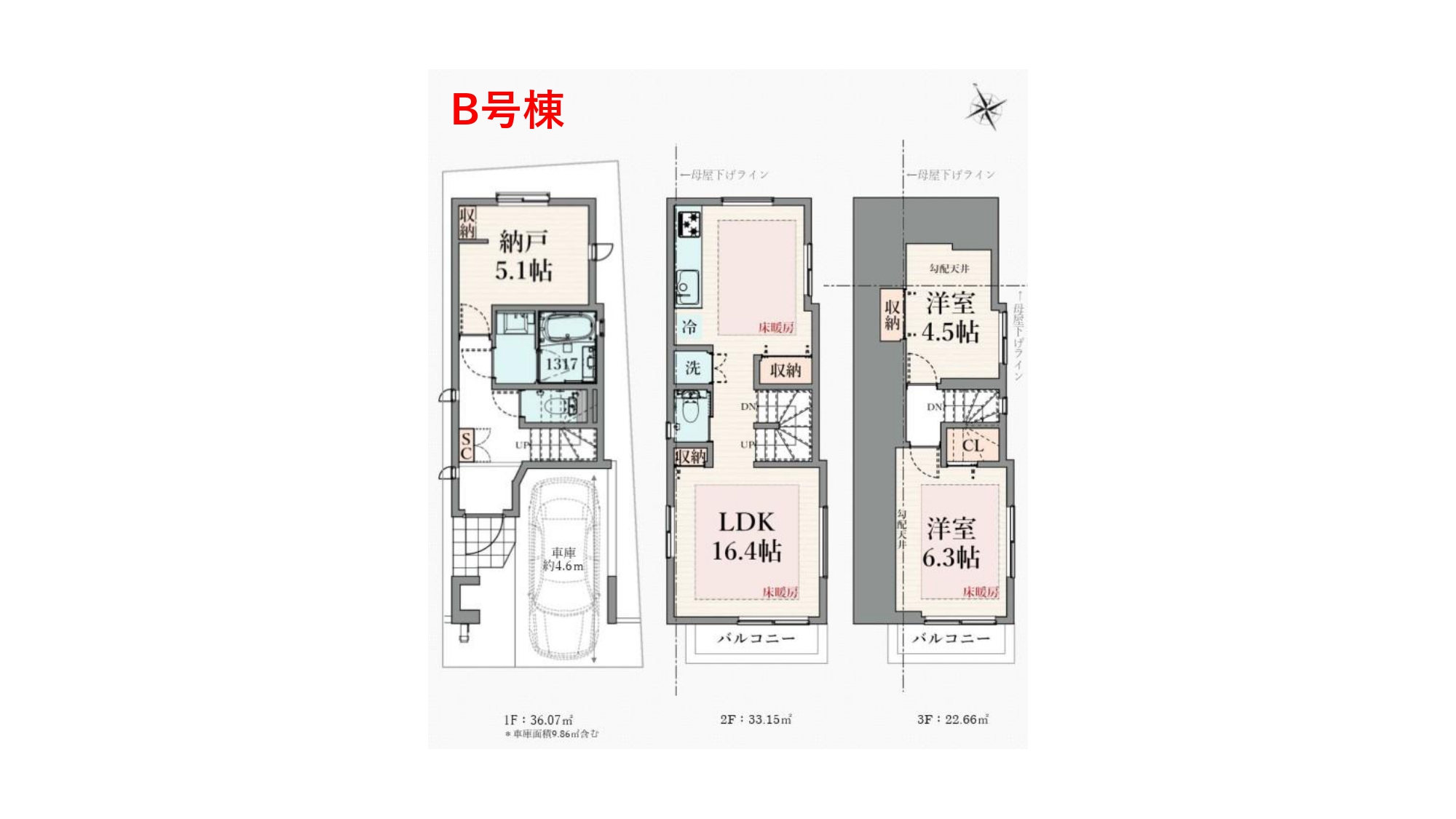 B号棟:5,380万円 / 2LDK+S+駐車場